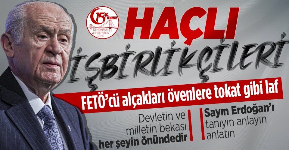 Hiçbiri 15 Temmuz musibeti kadar sarsmamıştır. 15 Temmuz işgal teşebbüsüdür. 15 Temmuz'da TBMM'yi bombalayan hainlerle 1920'lerde türbe tekmeleyen talan eden barbarlar arasında fark yoktur. Bununla hep övüneceğiz çok çalışacağız. Tehditlere kulak asmayacağız. Kardeşçe yaşayacağız. Bizim bizden başka dostumuz yoktur. 15 Temmuz'da millet kenetlendi birleşti ve oyuncuların maskesini düşürdü. Bu ruhun devamı korunmalıdır. Kısır gerilimlerle oyalanacak zaman yoktur. Cumhur ittifakı bu özlemden doğmuştur. 'Bayrak inmez vatan bölünmez' diyerek ülkeye sahip çıkacağız. İsterse aynı karanlık yolun diğer taşeronları olsun Türk milletini yenemeyecekler.