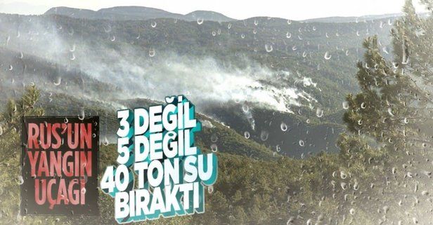 Köyceğiz, Milas, Menteşe, Seydikemer, Kavaklıdere ve Yatağan ilçelerindeki orman yangınlarına uçak ve helikopterle müdahale devam ediyor. 40 TON SU ATTI 40 TON SU ATTI Milas ilçesi Fesleğen mevkisinde devam eden orman yangınında görev yapan 40 ton su atma kapasitesine sahip Rus yangın söndürme uçağının müdahalesi, İHA tarafından görüntülendi. Görüntüde, uçağın 40 ton suyu dumanlı ve alevlerin yükseldiği bölgeye bırakması anbean kaydedildi.
