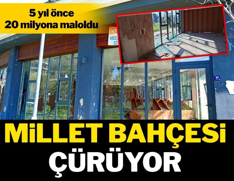 34 bin 194 metrekare üzerine kurulu millet bahçesi içerisinde bulunan kafeterya ve restoran binalarının camları kırıldı, içindeki malzemeler yerlerde çürümeye terkedildi. Bahçedeki çocuk oyun alanları ve oturma grupları tahrip edilerek kullanılamaz hale getirildi.