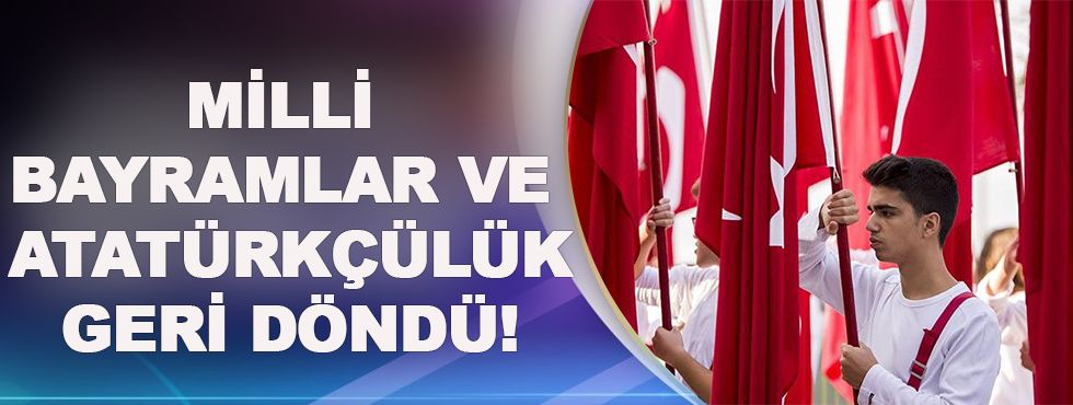 Resmi Gazete’nin dünkü sayısında ulusal bayramlarla ilgili değişikliği de içeren kararlar yayımlandı. Milli Eğitim Bakanlığı daha önceki yıllar da okullara gönderdiği belirli gün ve haftalar çizelgesinde 19 Mayıs Gençlik ve Spor Bayramı, 23 Nisan Ulusal Egemenlik ve Çocuk Bayramı ile 29 Ekim Cumhuriyet Bayramı’na yer vermemişti. Bakanlığın bu kararı tepkilere neden olmuş ve milyonlar her milli bayramda meydanlara inerek Cumhuriyeti ve Atatürk’ü selamlamıştı. Resmi Gazete’de dün yayımlanan kararla birlikte belirli gün ve haftalar çizelgesine milli bayramlar yeniden eklendi.