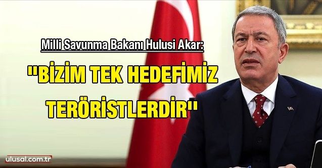 Sabırla azimle üzerine giderek terörü bitirmekte kararlı olduklarını vurgulayan Akar, "Bizim tek hedefimiz teröristlerdir. Bizim Kürt, Arap kardeşlerimizle oradaki diğer etnik ya da dini gruplarla hiçbir şekilde sorunumuz yok. Bizim hedefimiz sadece ve sadece teröristlerdir." diye konuştu.