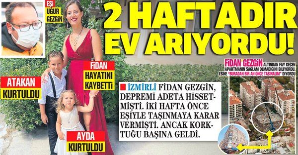 İzmirli Fidan Gezgin, depremi adeta hissetmişti. İki hafta önce eşiyle taşınmaya karar vermişti.