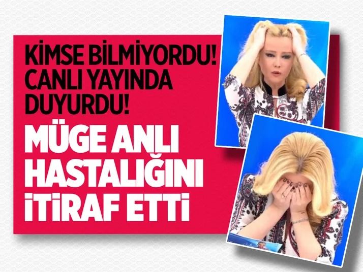 ATV'de canlı yayınlanan Müge Anlı ile Tatlı Sert programının başarılı sunucusu Müge Anlı'dan programda hayranlarını üzern 'hastalık' itirafı... Müge Anlı hastalığını canlı yayında açıklayarak hayranlarını üzüntüye boğdu. Başarılı sunucu, hastalığına ilişkin "Söylesem bu kadın nasıl canlı yayına çıkıyor derseniz" ifadelerini kullandı.