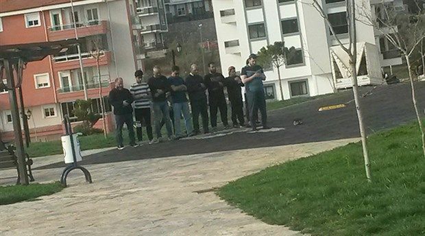 Muğla’da İMKB Ortaokulu’nun 50 metre ötesindeki Menteşe Kent Parkı’nda biraraya gelen grup namaz kıldı. Menteşe Parkı’nın 100 metre ilerisinde cami olmasına karşın grubun çocuk parkında toplu namaz kılması dikkati çekti.