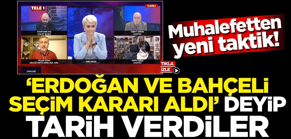 Baskılarla iktidara erken seçim kararı aldırmayı beceremeyen muhalefet, şimdi de Erdoğan ve Bahçeli erken seçim kararı aldı naraları atmaya başladı. bir televizyon programına katılan Gelecek Partisi Genel Başkan Yardımcısı Selçuk Özdağ, Erdoğan ve Bahçeli'nin erken seçim kararı aldığını belirterek tarih bile verdi. Özdağ, iki liderin 19 Haziran'da seçim yapılmasında mutabık kaldığını iddia etti.