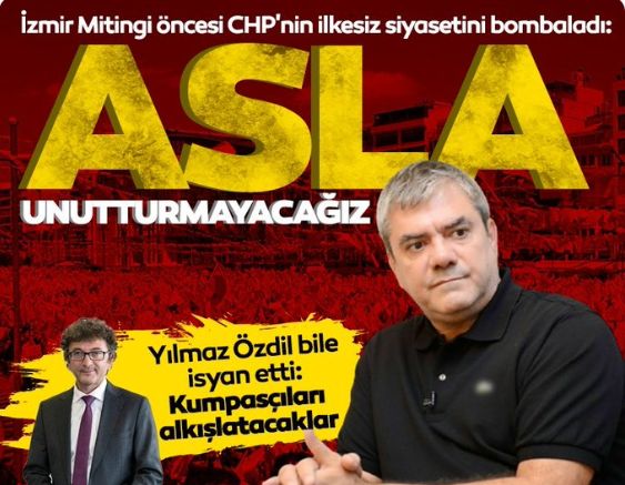 7'li koalisyonun İzmir Mitingi'ni "Asla unutturmayacağımız bir gün olarak nitelendiren Özdil, "Kemalizm ırkçılıktır" diyen kumpasçı Taraf gazetesi yazarı Yüksel Taşkın'ın CHP'den İzmir 1. Bölge 1. Sıra Milletvekili adayı gösterilmesi tepki gösterdi.