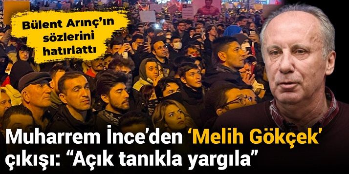 CHP Parti otobüsünden vatandaşlara seslenen İnce, Bülent Arınç'ın, eski Ankara Büyükşehir Belediye Başkanı Melih Gökçek hakkında sözlerini hatırlatarak, "Sayın Ekrem İmamoğlu'nu nasıl yargılıyorlar? Bir gizli tanık var arada. Gizli tanık diyor ki, 'Ben şunları duydum'. Gizli tanığın ifadesiyle yargılama yapıyorlar. Ankara'da açık tanık var. Bakanlar kurulundan çıktı Bülent Arınç, 'Melih Gökçek, Ankara'yı parsel parsel satıyor' dedi. Eğer gizli tanıkla Ekrem İmamoğlu'nu yargılıyorsan açık tanıkla Melih Gökçek'i yargıla." dedi.