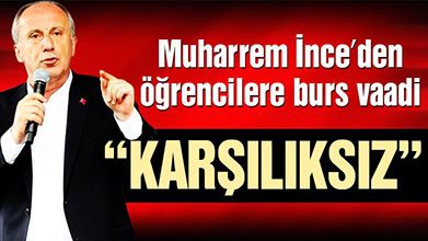 CHP’nin Cumhurbaşkanı adayı Muharrem İnce gündeme ilişkin önemli değerlendirmelerde bulundu. Öğrencilere burs vaadinde bulunan İnce, “Üniversite öğrencilerine karşılıksız olarak sözüm 19 Mayısta gençlik bursu, 29 Ekim’de Cumhuriyet bursu verilecektir” ifadelerini kullandı.