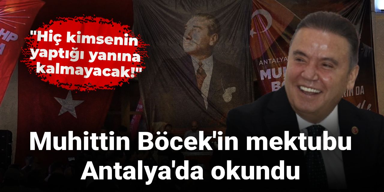 'Hak hukuk adalet' sloganlarının atıldığı mitinge hakkında başlatılan soruşturmalar kapsamında tutuklanan Muhittin Böcek mesaj gönderdi. Ne Antalyalıların ne de Anatalya'nın başını öne eğecek hiçbir şey yapmadığını belirten Böcek, mesajında şunlara yer verdi: