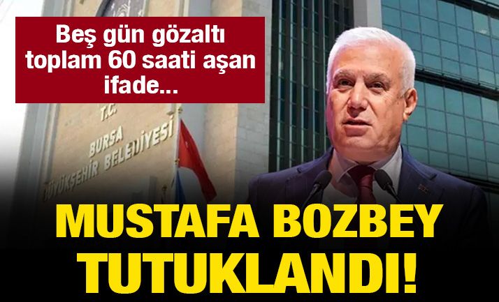 Bursa Büyükşehir Belediye Başkanı Mustafa Bozbey, günlerden beri gözaltında. Bozbey'in 40 saati aşkın savcılıkta ifade verdiği öğrenildi. Bozbey, hakimliğe sevk edildi. 20 saat emniyette, 40 saat savcılıkta ifade veren Bozbey'in hakimlikte de ifade verdi. Bozbey, tutuklandı.