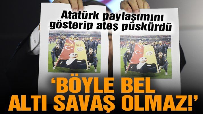 Sosyal medyada paylaşılan bir fotoğraf karesiyle ilgili konuşan Mustafa Cengiz ”Soğuk savaşta yapılan algı yönetiminin daha şiddetlisi, bana ve yönetime karşı yapıldığını görüyorum. Mustafa Cengiz’in Atatürk üzerinden reklamını yaptığı yönünde eleştiriler varmış. 10 Kasım paylaşımında sadece Mustafa Cengiz yazsa, Galatasaray Spor Kulübü eklemesek anlarım. Sadece Galatasaray Kulübü yazsaydık, ‘Bak bak, bu adam çok sık Ankara’ya gidiyor, Bakanlar’la görüşüyor, adını yazdırmamış’ denecekti. Futbolcuların açtığı Atatürk pankartının üzerine biri sosyal medyada Mustafa Cengiz yazıyor. İnsanlar buna inanır. Yapmayın, etmeyin. Böyle bel altı savaş olmaz. Soğuk savaşta bile böyle basitlikler yapılmadı” şeklinde konuştu.