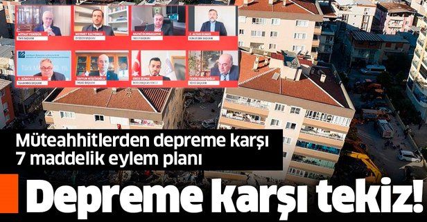 İzmir'de 116 kişinin hayatını kaybetmesine, bin 34 kişinin de yaralanmasına yol açan Ege Depremi'nin ardından Sivil Toplum Kuruluşları (STK) harekete geçti. Türkiye Müteahhitler Birliği (TMB) girişimiyle bir araya gelen Gayrimenkul ve Gayrimenkul Yatırım Ortaklığı Derneği (GYODER), İstanbul İnşaatçılar Derneği (İNDER), Konut Geliştiricileri ve Yatırımcıları Derneği (KONUTDER), Türk Müşavir Mühendisler ve Mimarlar Birliği (TürkMMMB), Türkiye İnşaat Malzemesi Sanayicileri Derneği (Türkiye İMSAD), Türkiye İnşaat Sanayicileri İşveren Sendikası (İNTES) ve Yapı Denetim Kuruluşları Birliği (YDKB) depreme karşı 7 başlık altında bir bildiri açıklayarak 'Depreme Karşı Tekiz' dedi. Bildiride yer alan başlıklar ortak girişimler için yol haritası olacak. Tespitler de hükümet ve ilgili tüm kurumkuruluşlarla paylaşılacak.