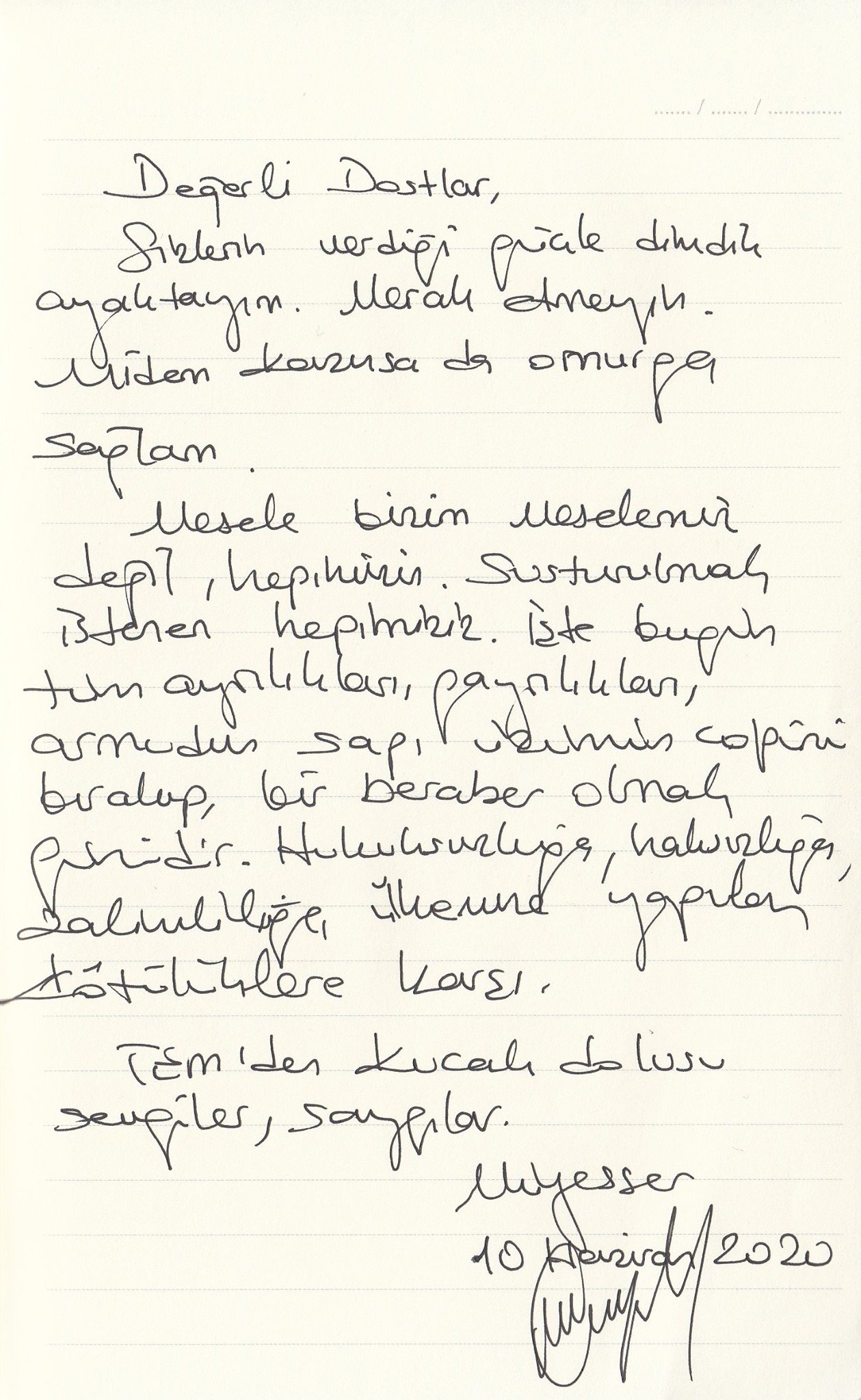 “Mesele bizim meselemiz değil hepimizin. Susturulmak istenen hepimiziz” diyen Yıldız, birlik ve beraberlik çağrısı yaptı.