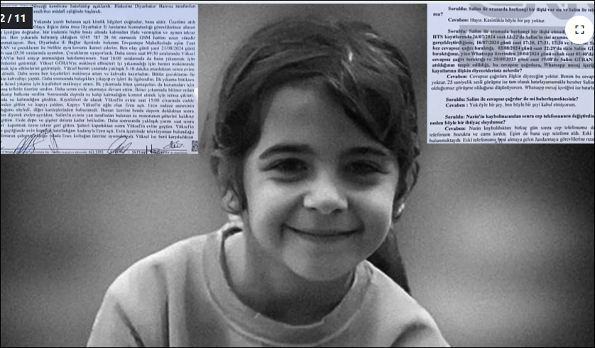 “Narin 20 Ağustos akşamı amcasının evinin yakınındaki ahırda maalesef Türk toplumunun kaldıramayacağı bir şey gördü. Bu işin planlı olduğunu, o gün olayın sıcaklığıyla bu plan örgüsünün kurulamayacağını düşünüyor olursak, bir gün önce görülmüş bir şeyin bir gün sonra Kur'an kursundan sonra planlandığını da bir mantık çerçevesine oturtmuş oluyoruz. Narin'in şöyle bir özelliği var. Yakın köylerden görüştüğüm insanlardan Narin'i tanıyanların söylediğine göre kendisinin Türkçe iletişimi çok kuvvetli. Kendisini çok iyi anlatabilen, belagati yüksek bir çocuk. Bundan kaynaklı olarak onun görmüş olması biraz da 'Bu susmaz, bu kesin anlatır' şüphesi uyandırmış yakalananlarda.