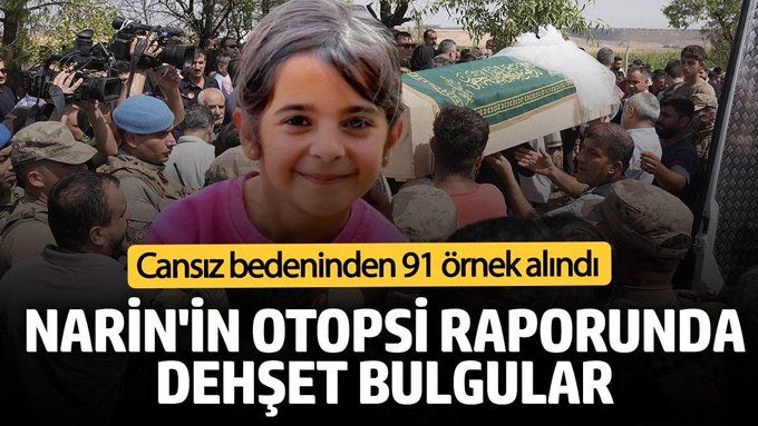 Diyarbakır'ın Bağlar ilçesinde 21 Ağustos'ta kaybolan ve 19 gün sonra derede çuval içinde cansız bedeni bulunan Narin Güran'ın Diyarbakır Adli Tıp Kurumu'nda yapılan otopsisinin ön raporu ortaya çıktı.