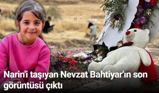 Son elde edilen görüntülere göre, Nevzat Bahtiyar'ın Narin'in cesedini götürürken ve gömdüğü sırada yalnız olduğu da belirtiliyor. Yapılan titiz çalışmalar sonucu görüntülere ulaşılırken, kamera kaydı bir CD'ye şifreli olarak kaydedilip soruşturmayı yürüten Diyarbakır Cumhuriyet Başsavcılığı'na tutanakla teslim edildiği öğrenildi.