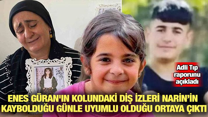 Edinilen bilgiye göre, Adli Tıp 2'inci İhtisas Kurulu, Narin Güran cinayetinin tutuklularından ağabeyi Enes Güran'ın kolundaki diş izlerinin kime ait olduğuna dair raporu tamamladı. Raporda, şu ifadelere yer verildi: