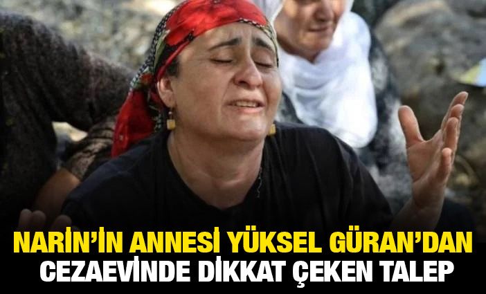 Türkiye, Diyarbakır'ın Bağlar ilçesinde yaşanan 8 yaşındaki Narin Güran cinayetiyle sarsılmıştı. Narin'in hayatını kaybetmesi, büyük bir infiale yol açmış ve cinayetle ilgili anne Yüksel Güran, ağabey Enes Güran, amca Salim Güran ve itirafçı Nevzat Bahtiyar tutuklanmıştı. Mahkeme, Yüksel Güran ve ailesine müebbet hapis cezası vermişti. Ancak son dönemde, cezaevinde tutuklu bulunan Yüksel Güran'dan gelen talep, dikkatleri yeniden üzerine topladı.