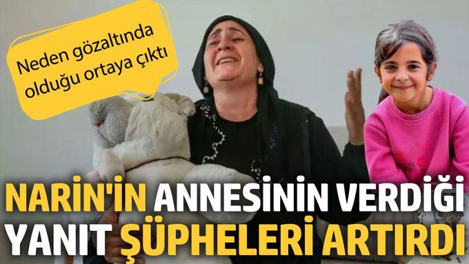 Aralarında anne, baba ve ağabeyin de aralarından bulunduğu 25 kişinin sorgusu sürüyor. Amcanın tutukluk hali ise devam ediyor. Herkes Narin'in katilinin ya da katillerinin kim olduğunu merak ederken, annenin neden gözaltında olduğu ortaya çıktı.