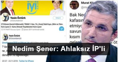 Asıl seviyesizlik, ahlaksızlık İP’nin Denizli Milletvekili Yasin Öztürk’ten geldi. Twitter hesabından, “İp ne?” diye sorunca, kendisine, “İP ne diye soruyor, AKP gibi, CHP gibi, MHP gibi parti kısaltması” diye cevap verdim.