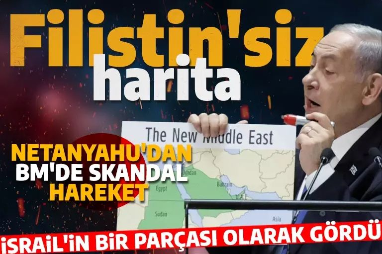 İsrail Başbakanı Binyamin Netanyahu, ABD’nin New York şehrinde düzenlenen Birleşmiş Milletler (BM) 78’inci Genel Kurulu’nda yaptığı konuşmada Filistin'siz harita kullandı.