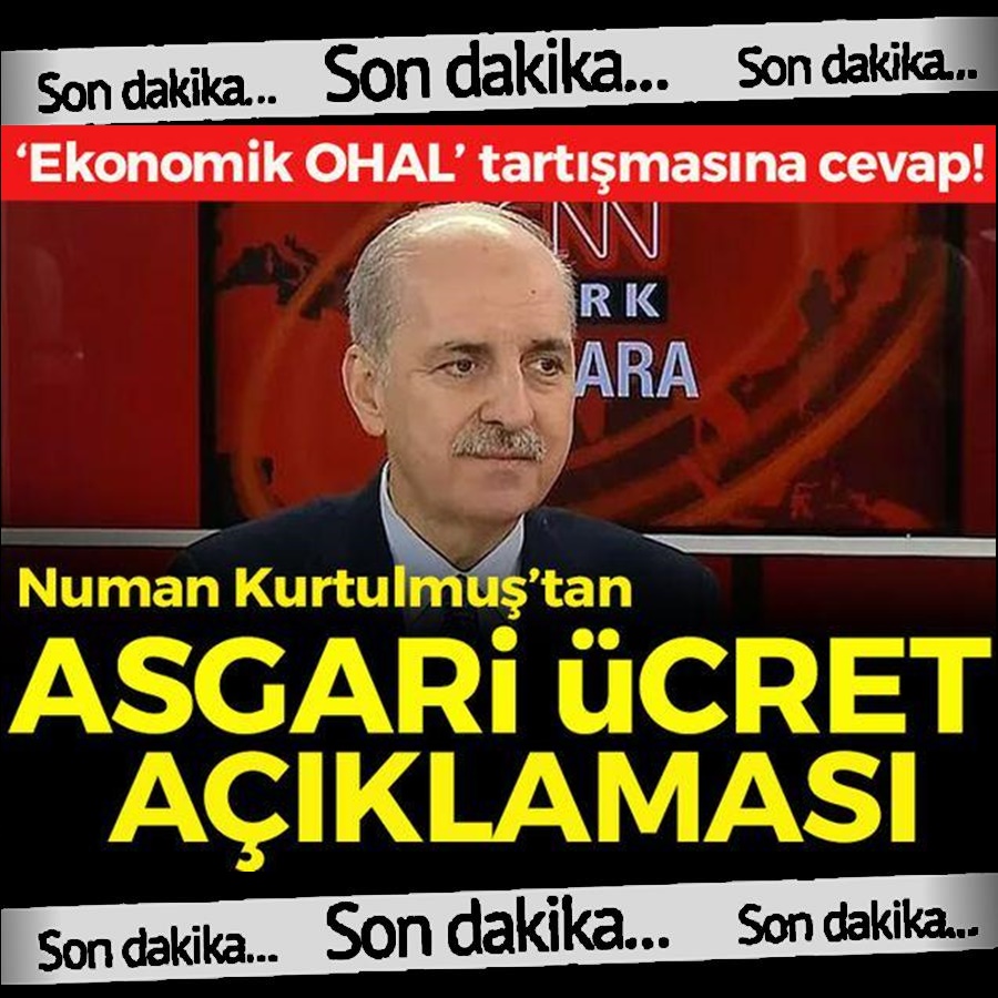 AK Parti Genel Başkanvekili Numan Kurtulmuş, 'Asgari ücret ne kadar olacak?' ve 'Asgari ücret ne zaman açıklanacak?' sorularına yanıt verdi. Numan Kurtulmuş 'Ekonomik 'OHAL' tartışmalarıyla ilgili, 'Saçma sapan bir iddiadır. Türkiye ekonomik sistemini serbest pazar ekonomisi şartları içerisinde gündeme almış bir ülkedir. Serbest pazarın koşullarından taviz verilmeden devam eder. Dövizdeki fiyatlama konusunda serbest pazar fiyatları hakimdir. ' dedi.
