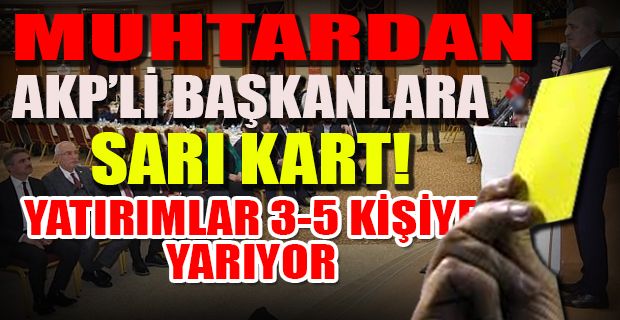 Kurtulmuş’un konuşmasından sonra, söz alan ve Melekbaba Mahallesi Muhtarı Ali Demir olduğu belirtilen bir konuşmacı, elindeki dosyadan bir kart çıkararak, “Ulaşamadığımız, telefonlarımıza çıkmayan ve bu nedenle mahallemizin sorunlarını iletemediğimiz AK Parti İl Başkanı İhsan Koca’ya sarı kart gösteriyorum. Çevre yolunun altına hizmet getirmediği için Büyükşehir Belediye Başkanı Selahattin Gürkan’a sarı kart gösteriyorum” dedi.