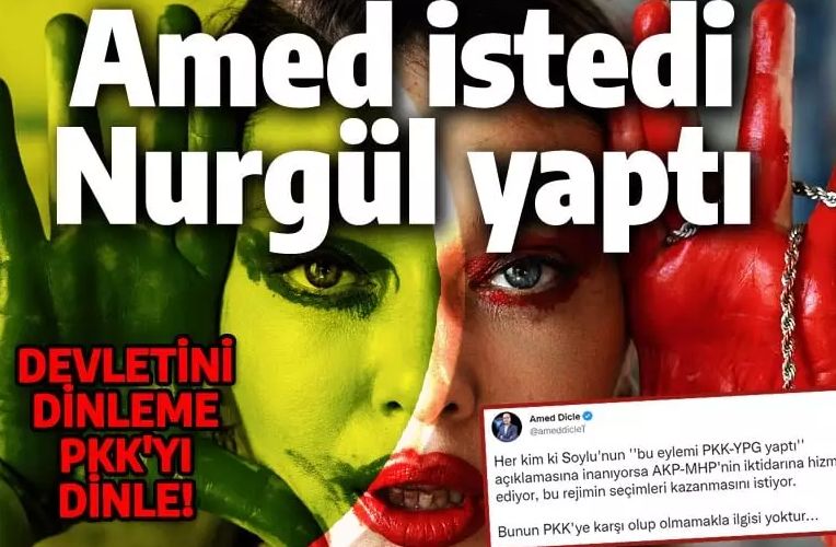 Aynı zamanda PKK ve Suriye'deki kolu YPG'nin açıklamalarını da paylaşan Dicle, hedef saptırma çalışmasında kısmen başarılı oldu. Ünlü sinema sanatçısı Nurgül Yeşilçay, terör örgütünün açıklamasına inanıp kendi devletine inanmadı.