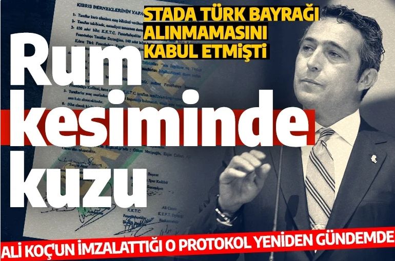 Milli değerlere hassas olan aynı Ali Koç, daha bir yıl önce, Güney Kıbrıs Rum Yönetimi ekibi AEK Larnaca deplasmanında Türk bayraklı atkıların stada alınmamasına ve pankarttaki Türk bayrağının kapatılmasına sessiz kalmıştı.