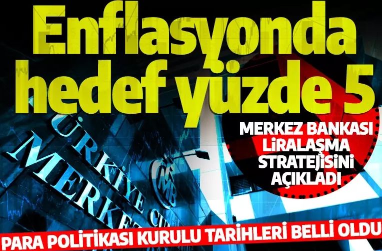 Türkiye Cumhuriyet Merkez Bankası (TCMB) 2023 yılı Para Politikası ve Liralaşma Stratejisini 10 maddede açıkladı. Öte yandan Merkez Bankası'nın önümüzdeki dönem Para Politikası Kurulu toplantı tarihleri de açıklandı.