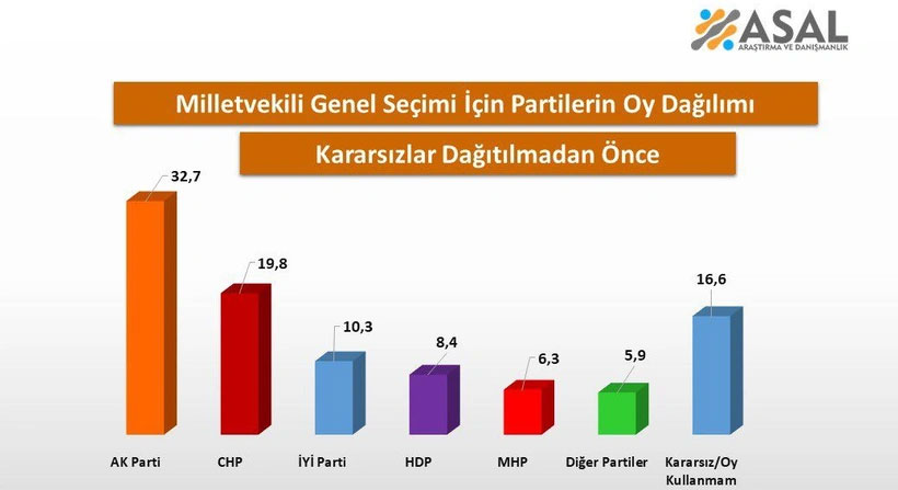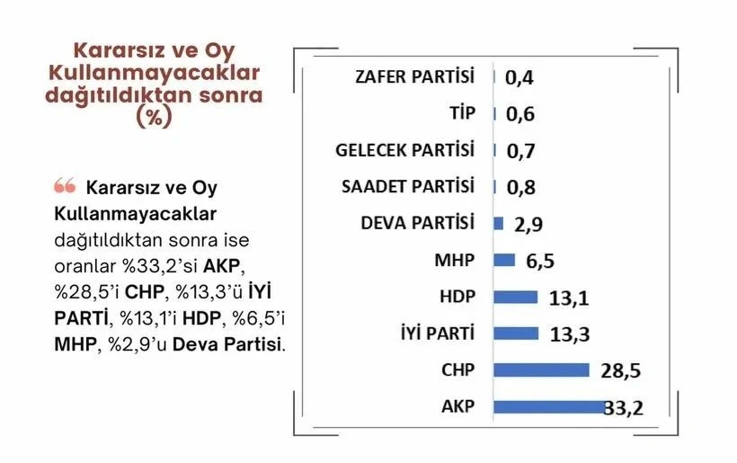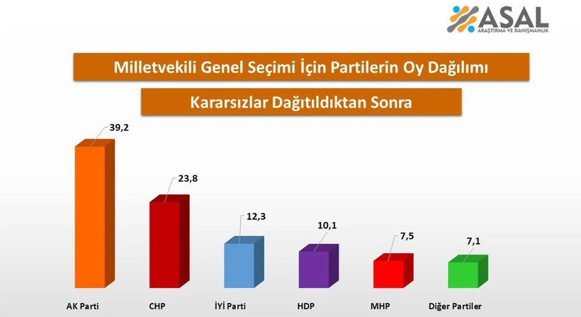 MAK'ın anketine göre kararsız oylar dağıtıldığında partilerin oy dağılımı şöyle: