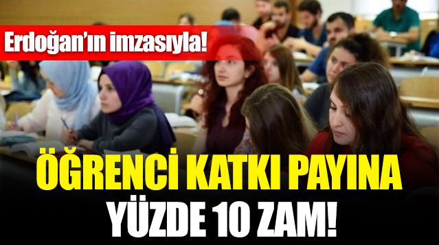 Öğrenci katkı paylarına yaklaşık yüzde 10 zam yapıldı. Tıp fakültelerinde öğrencilerin ödeyeceği para 642 liradan 706 liraya, diş hekimliğinde 537 liradan 590 liraya, hukuk ve işletmede 340 liradan 374 liraya çıkarıldı.