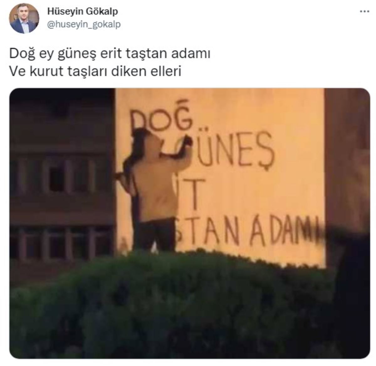 Twitter hesabından açıklamada bulunan Hüseyin Gökalp, "Doğ ey güneş erit taştan adamı Ve kurut taşları diken elleri" ifadelerini kullandı.Gökalp'in, Atatürk'ün tüm Türkiye'de anıldığı günde "Erit taştan adamı" demesi sosyal medyada büyük tepki topladı. Gökalp'in paylaşımına çok sayıda tepki mesajı geldi.