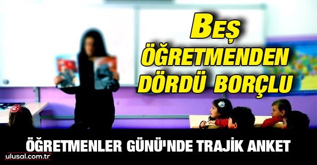 • Öğretmenlerin yüzde 82,6’sı borcu olduğunu ifade etti. Bunların yüzde 36,7’si 100 bin liradan fazla borcu olduğunu söyledi. Öğretmenlerin yüzde 1,8’i son bir yılda maaşına haciz konulduğunu belirtti.