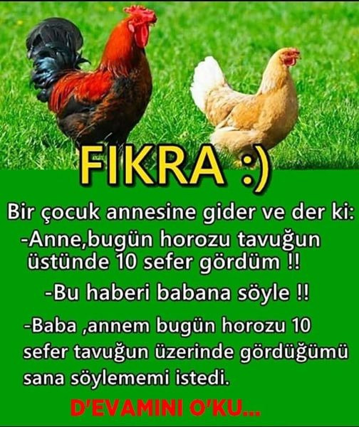 – Baba, annem bugün horozu tam 10 defa tavuğun üstünde gördüğümü sana söylememi istedi…