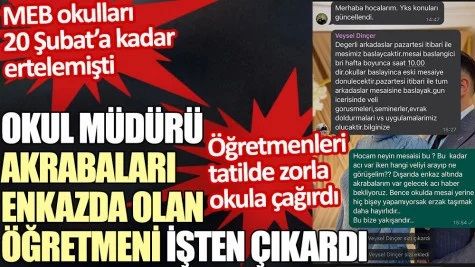 Ancak bakanlığın 20 Şubat kararına rağmen, öğretmenleri mesaiye çağıran Beylikdüzü Teknoloji Lisesi Müdürü Veysel Dinçer, enkaz altında akrabalarım var diyerek karara itiraz eden bir öğretmenin işine son verdi.