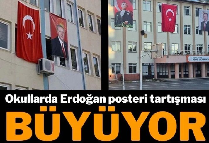 Buna göre, 29 Ekim Cumhuriyet Bayramı, 10 Kasım Atatürk’ü Anma Günü ve kurtuluş günleri gibi resmi etkinliklerde, Türk Bayrağı’nın sağına Atatürk, soluna ise Cumhurbaşkanı Erdoğan posteri asılması zorunlu kılındı.