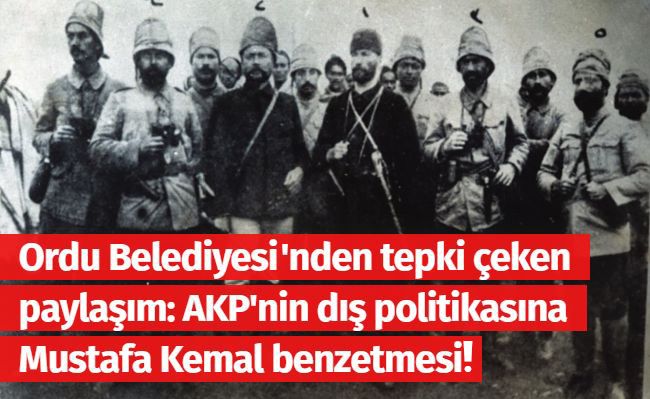 Belediyenin resmi hesabından yapılan paylaşımda AKP'nin dış politikadaki icraatleri, emperyalist İtalya'nın işgaline karşı halkla beraber direniş örgütlemeye giden Mustafa Kemal ve diğer subayların mücadelesine benzetildi. Gönderide Mustafa Kemal'in Trablusgarp'ta çekilen bir fotoğrafı paylaşılarak "Nerede kalmıştık? #Libya" notu düşüldu.