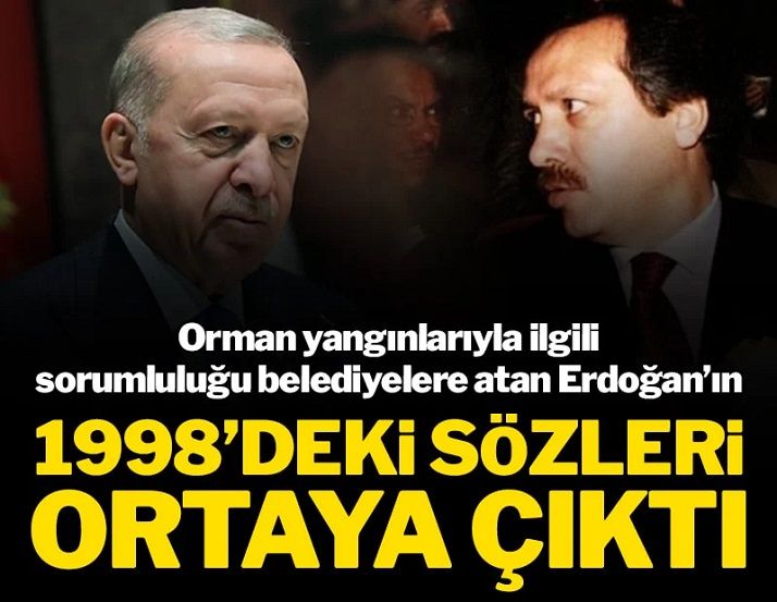 Erdoğan, 1998'deki açıklamasında, "Orman yangınlarının Orman Bakanlığı'nın sorumluluğundadır" dediği ortaya çıktı.