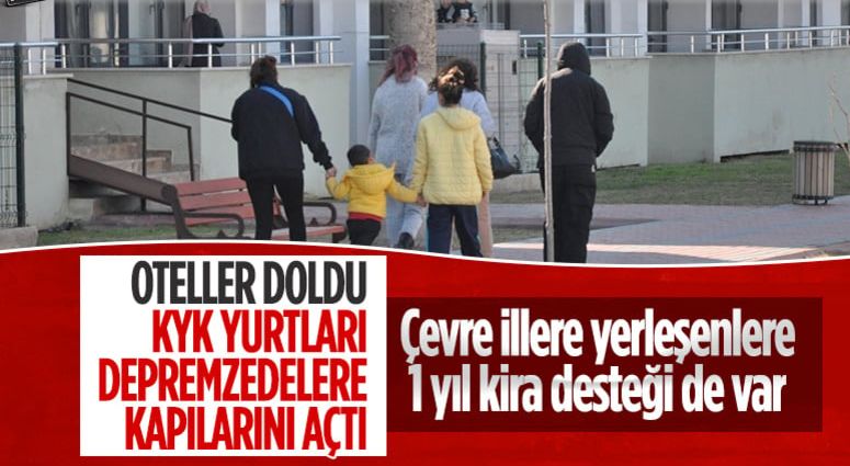 Bu kapsamda Cumhurbaşkanı Recep Tayyip Erdoğan üniversitelerin yaz dönemini uzaktan tamamlayacağını, böylece KYK yurtlarının da depremzedelere tahsis edilmeye başlandığını duyurdu.
