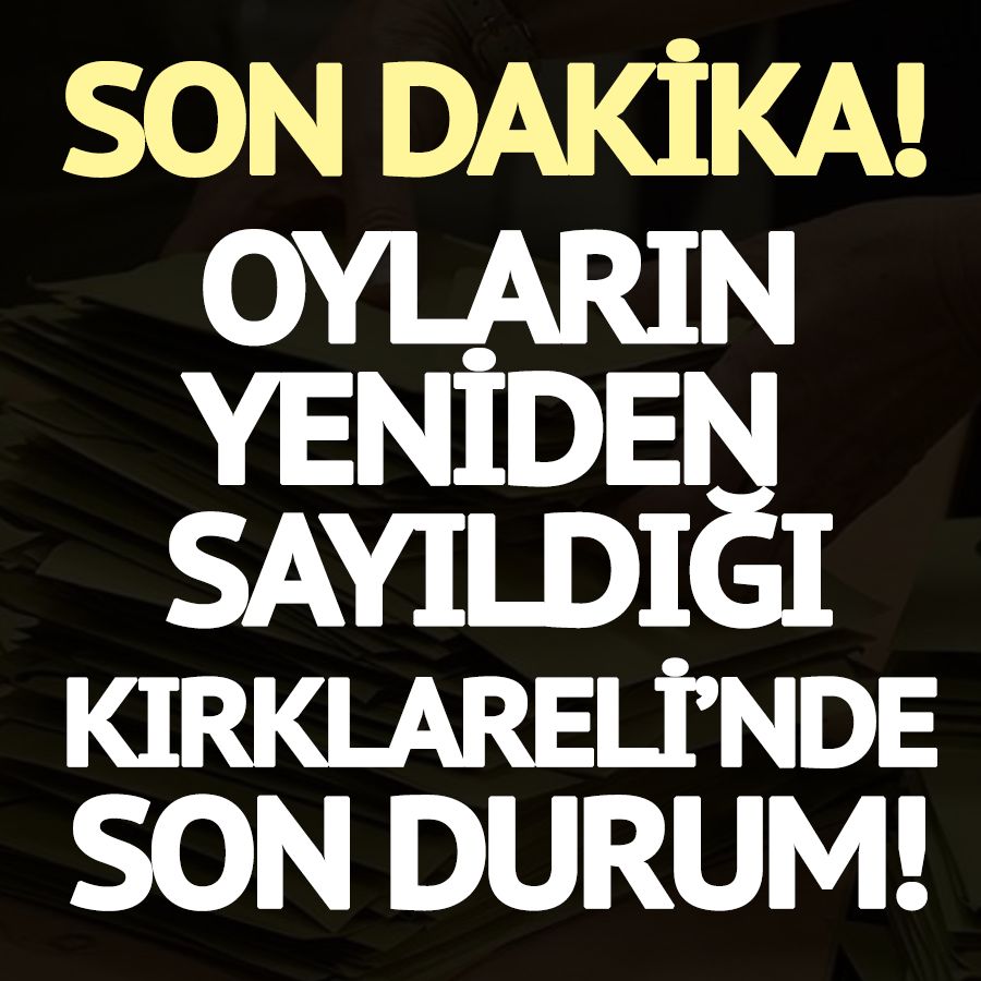 Kırklareli’nde 31 Mart seçimleri resmi olmayan sonuçlara göre bağımsız aday Mehmet Siyam Kesimoğlu 17 bin 176, Cumhur İttifakı’nın MHP’li adayı Derya Bulut 16 bin 928 oy aldı. Sonuçların ardından MHP ve AKP İlçe Seçim Kuruluna 170 sandığın tekrar sayılmasını talep etti. Kurul, 170 sandaki oyların yeniden sayılmasına karar vermiş ancak Kesimoğlu'nun İl Seçim Kuruluna itirazda bulunmasıyla İl Seçim Kurulu oyların tekrardan sayımını durdurmuştu. MHP ve AKP'nin YSK’ya yaptığı itirazlar sonucunda oyların yeniden sayılması kararı verildi.