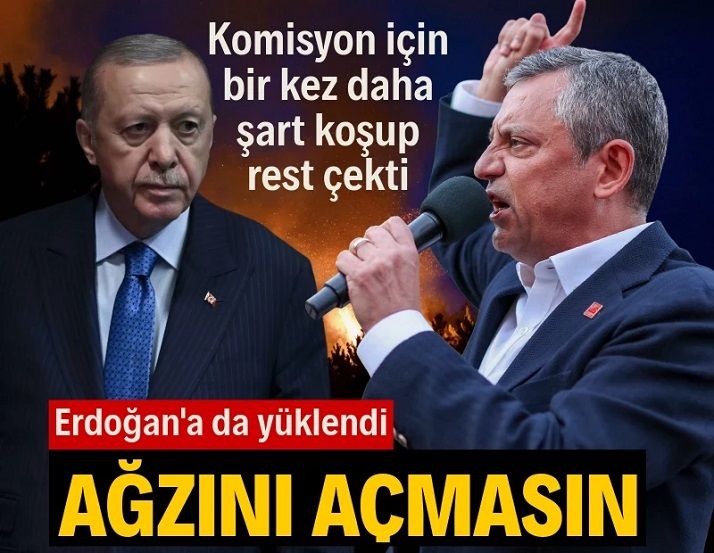 Günlerdir devam eden orman yangınları konusunda AKP ve Cumhurbaşkanı Recep Tayyip Erdoğan'ı sert sözlerle eleştiren Özel, "Bu envanter meselesinde ağzını açmasa iyi olur Sayın Erdoğan. 14 tane envanterinde özel lüks uçak var. Bakan yardımcıları bile tarifeli uçmuyor. Ayakları yere basmıyor. Ama yangın dediğimiz zaman herkesin gözü gökyüzünde, yeterli müdahale yapılamıyor" dedi.