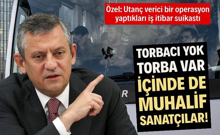 Bir 'torbacının' ifadesinden yola çıkılarak bu işlemin yapıldığını söyleyen Özel "Torbacı yok torba var, torbanın içinde de muhalif kimliği olan sanatçılar var" dedi.