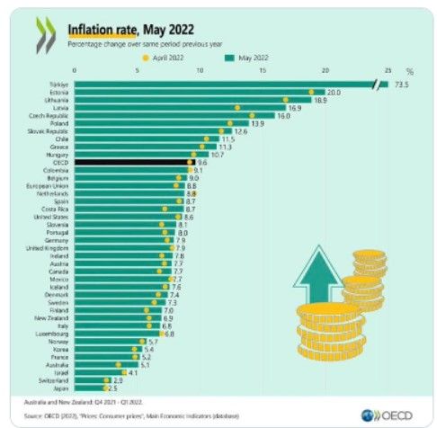 Prof. Dr. Özgür Demirtaş, 2022 yılının mayıs ayı için hazırlanan dünya üzerindeki ülkelerin enflasyon durumunu sosyal medya hesabından paylaştı.