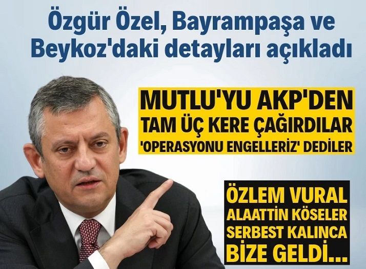 Ana muhalefet lideri Özgür Özel, CHP'li belediyelere dönük operasyonları değerlendirirken Bayrampaşa ve Beykoz'da yaşananlarla ilgili dikkati çeken iddialar paylaştı.