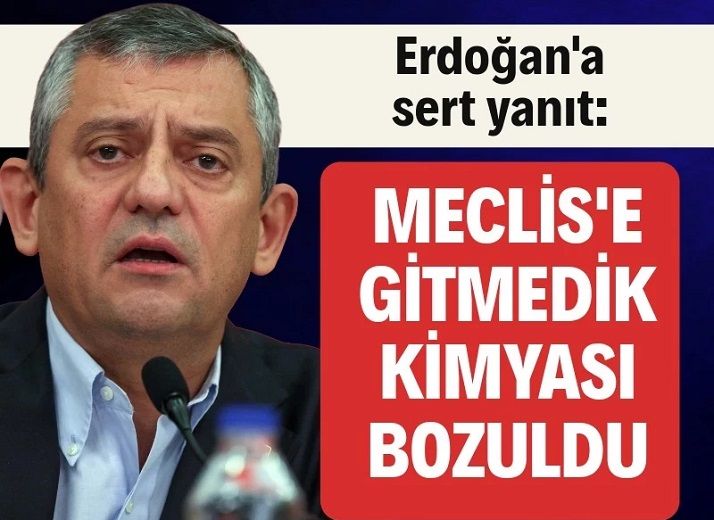 Törende kürsüye çıkan CHP lideri Özgür Özel'in hedefinde Meclis açılışında protesto ettikleri Cumhurbaşkanı ve AKP Genel Başkanı Recep Tayyip Erdoğan vardı.