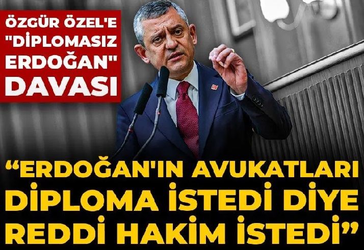 Bakın, Türk Milleti adına talep eden Recep Tayyip Erdoğan, karşı taraf Özgür Özel... Diyor ki; Ankara 44. Asliye Hukuk Mahkemesi'nin bu sayılı esas dosyasında davacı Recep Tayyip Erdoğan vekilinin 'redd-i hakim' talebinde bulunmuştur diyor davacı. 'Redd-i hakim', hakimin reddi talebi... Diyor ki; 'bu davayı bundan sonra bu hakim göremez.' Sebebi... Önce söyleyeyim göstereyim. Hakim orada, bizim avukat orada -canım benim gencecik bir kardeşim- burada da Cumhurbaşkanı'nın avukatları... 'Efendim' diyor bunlar, bunların diyor müvekkili Özgür Özel müvekkilimiz Recep Tayyip Erdoğan'ın diplomasının olmadığını söylüyorlar. Benimki de diyor ki: 'Var mı? Varsa dosyaya sunun.'