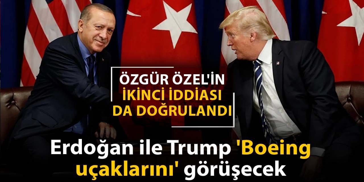 CHP Genel Başkanı Özgür Özel, geçtiğimiz cumartesi günü Trump'ın oğluyla Erdoğan arasındaki görüşmeyi duyurmuştu. Bugün ise Erdoğan'ın Trump'tan randevu almak için 300 adet Boeing uçağı almanın sözünü verebileceğini söylediğini iddia etti.