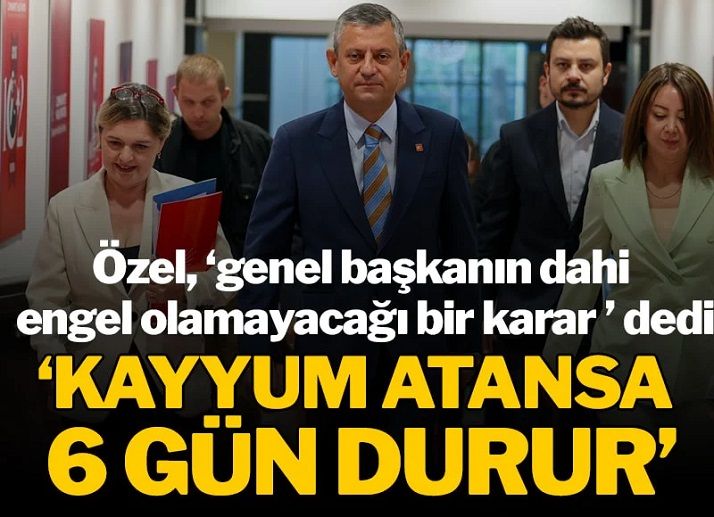 CHP Genel Başkanı Özgür Özel, Olağanüstü Kurultay hamlesini anlattı. Özel, "Delegeler genel başkanın dahi engel olamayacağı bir karar aldı. 15'inde bir karar olup partinin genel başkanlığına kayyum atansa kayyum 6 gün durur. 6 gün sonra da parti seçilmiş başkanı seçer." dedi.