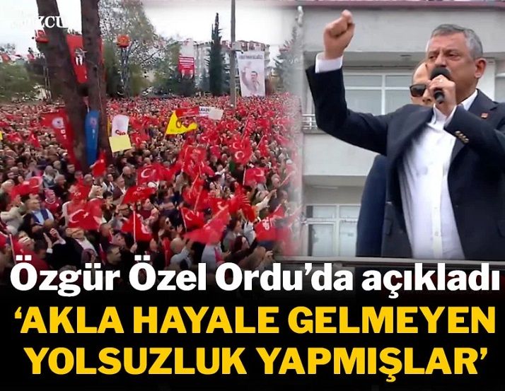 CHP, 67. Millet İradesi mitingini Ordu'da gerçekleştirdi. CHP Genel Başkanı Özgür Özel, "Çatalpınar'da akla hayale gelmeyen bir yolsuzluk yapmışlar. AKP'li belediye 50 TIR parke taşı parası ödüyor ama 15 TIR parke taşı geliyor. Bu durum tespit edilince gecenin bir vakti, başka belediyelerden 11 TIR'la parke taşı getirirken kameralarla tespit ediyorlar. Başka belediyenin parası ödenmiş taşını taşırken yakalanıyorlar." açıklamasını yaptı.